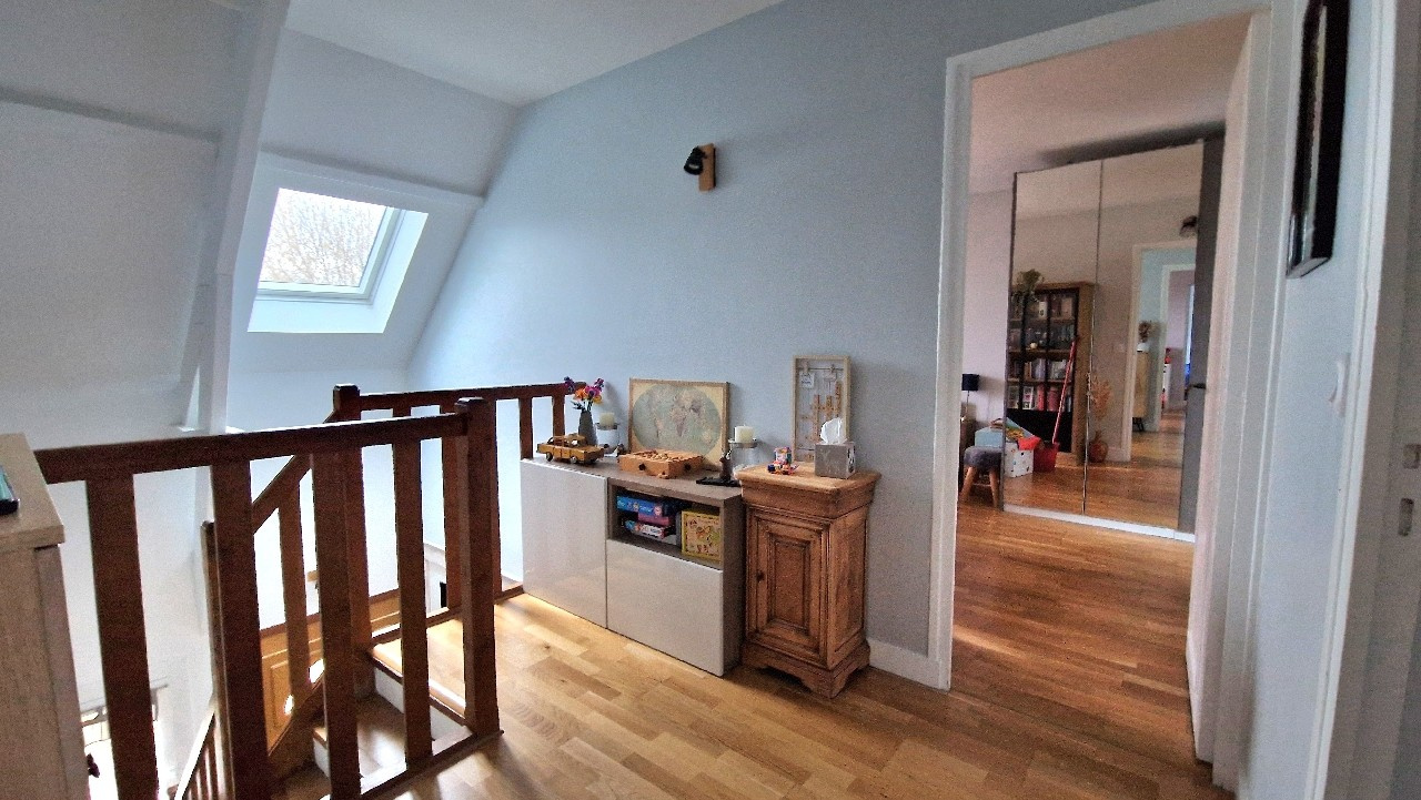 GROSLAY, Dans un quartier pavillonnaire recherché, proche de toutes les commodités, venez découvrir cette maison d'environ 120 m² (137 m² au sol) à la décoration soignée et en parfait état, édifiée sur une parcelle de 445m² avec deux terrasses sur l'avant et l'arrière du bien. Au rez-de-chaussée, elle se compose d'une entrée avec rangement, d'un séjour double donnant sur une cuisine ouverte équipée, d'une buanderie donnant accès au garage, d'une chambre avec salle d'eau et WC. À l'étage, vous disposerez d'un palier desservant une suite parentale de plus de 15m² avec son dressing et salle d'eau privative, deux chambres, salle de bains, WC séparé. Niveau confort, un poêle à granulés vient compléter le chauffage électrique, double vitrage PVC. N'hésitez pas à nous contacter au 01.34.28.80.80 pour visiter ce joli bien. Honoraires à la charge du vendeur. Les informations sur les risques auxquels ce bien est exposé sont disponibles sur le site https://www.georisques.gouv.fr/ - Montant estimé des dépenses annuelles d'énergie pour un usage standard : Entre 2470 Euros et 3400 Euros par an. Prix moyens des énergies indexés au 1er janvier 2023 (abonnement compris)